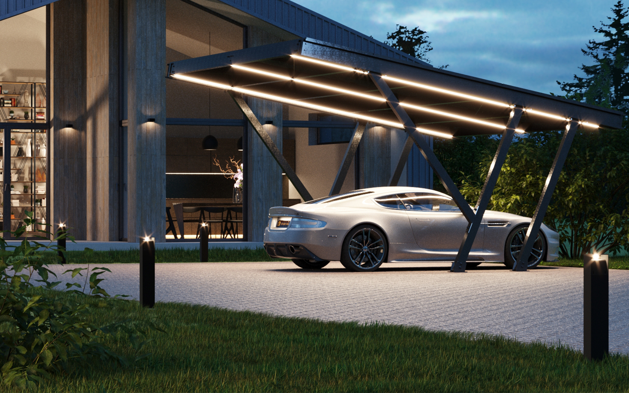 W zestawie brak paneli fotowoltaicznych (carport jest dostosowany do paneli marki Trina Solar). Falownik potrzebny do instalacji może pochodzić od dowolnego producenta.